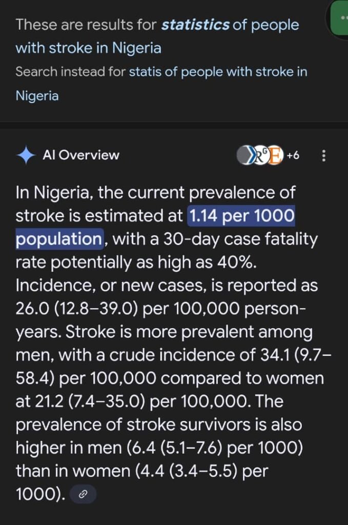 In Nigeria today, 1.14 out of every 1,000 people is living with stroke.