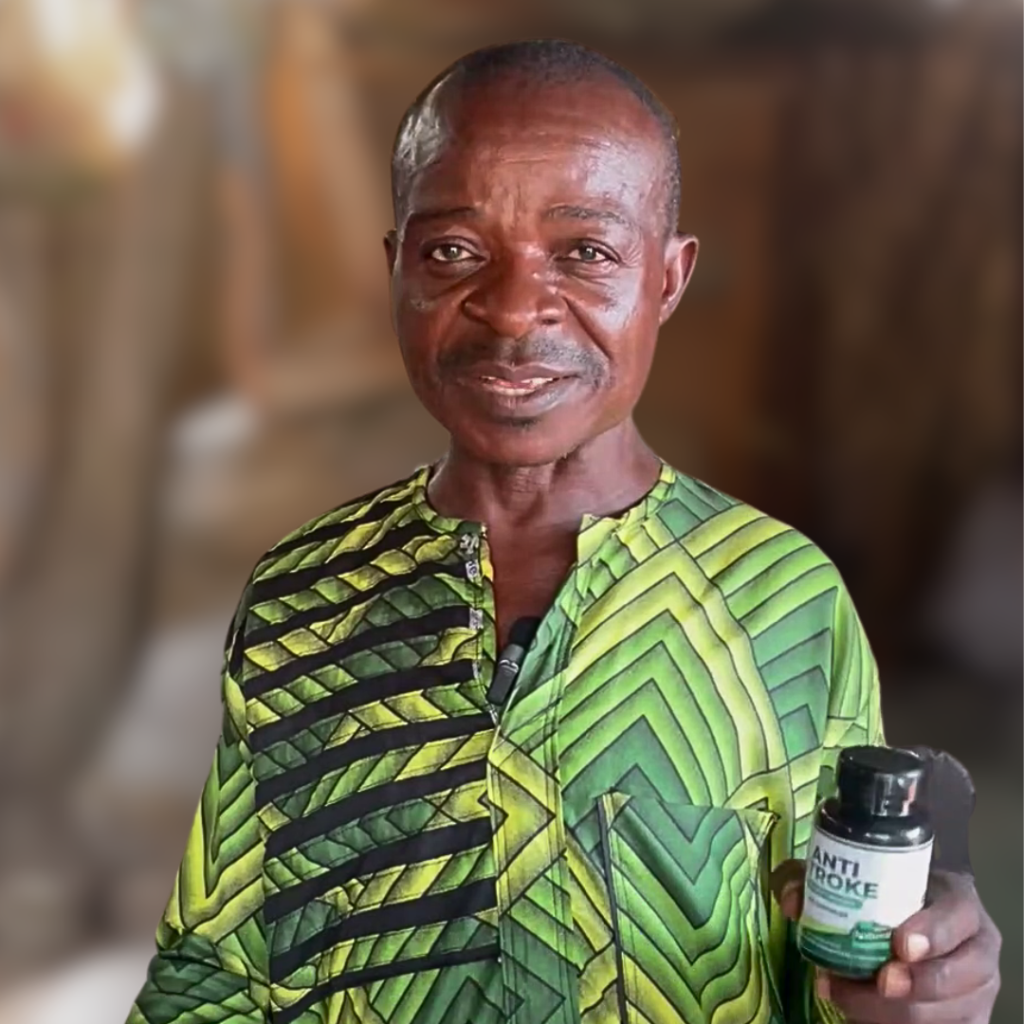“But that night, everything changed. I tried to speak—but my mouth had twisted, and no words came out. A neigbhor told me about Anti Stroke Herbal Capsule. I ordered it the same day. In just two weeks, I noticed improvement. The stiffness reduced, my speech got clearer, and I could move my leg with less pain. Mr Olu.